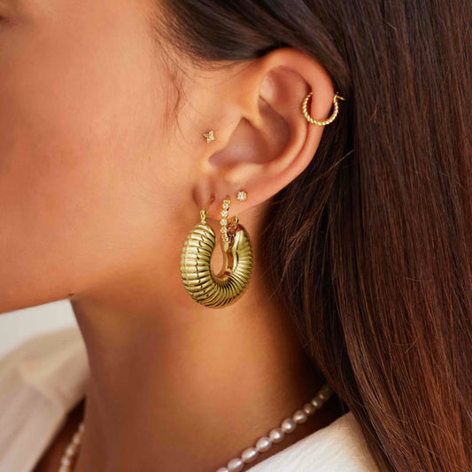 Chunky Irregular Shape Hoop Earrings 14K Gold Plated