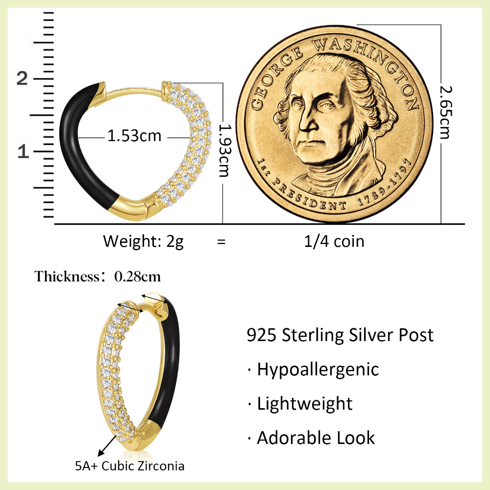 Black Enamel Heart-shaped Huggie Hoop Earrings