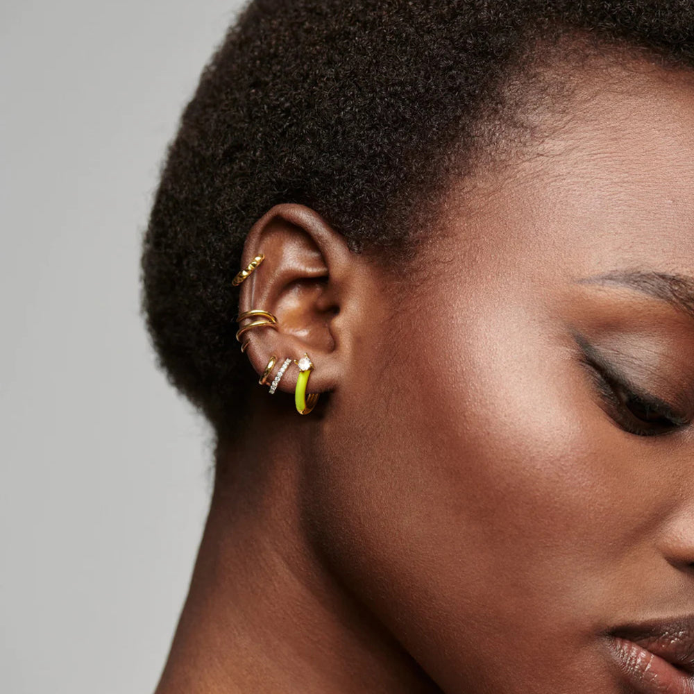 Gold Huggie Enamel Earrings Colorful Small Hoop Cuff Earrings-Lemon Yellow