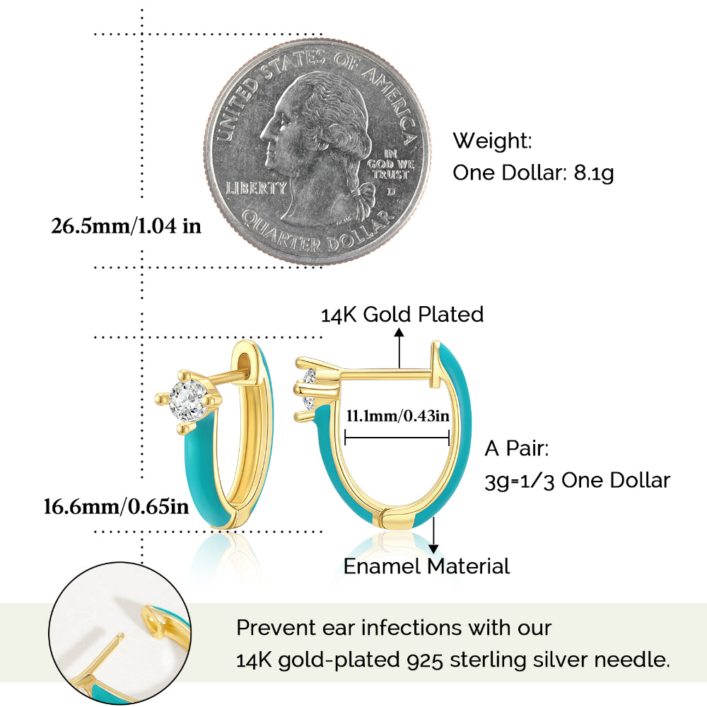 Gold Huggie Enamel Earrings Colorful Small Hoop Cuff Earrings-Teal