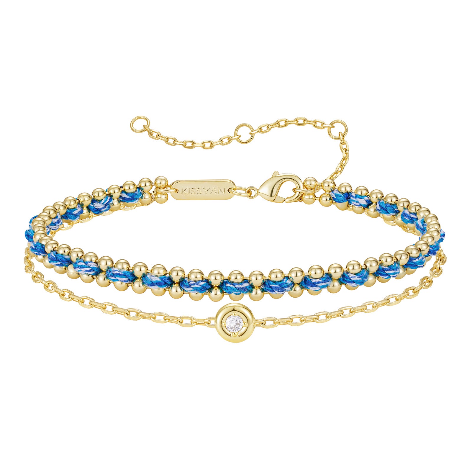 KissYan Adjustable Sports String Stackable Bracelet 14K Gold Plated