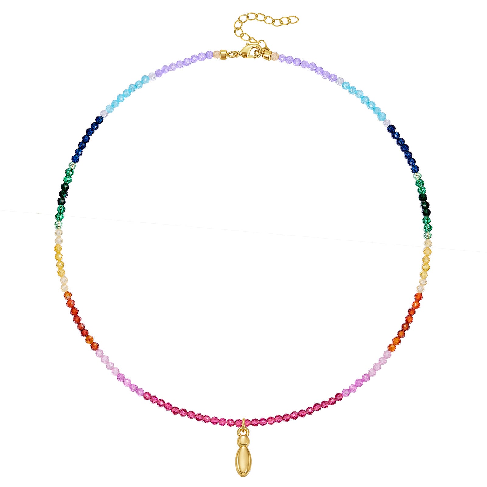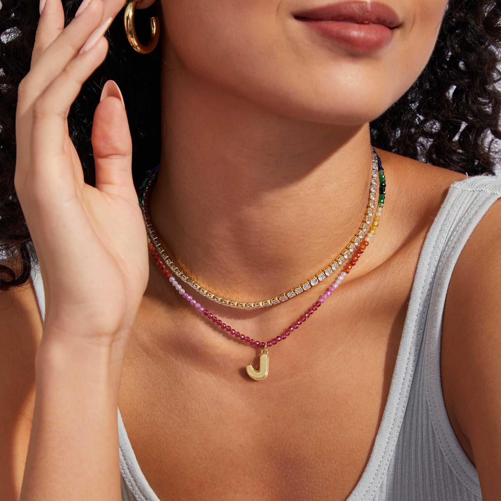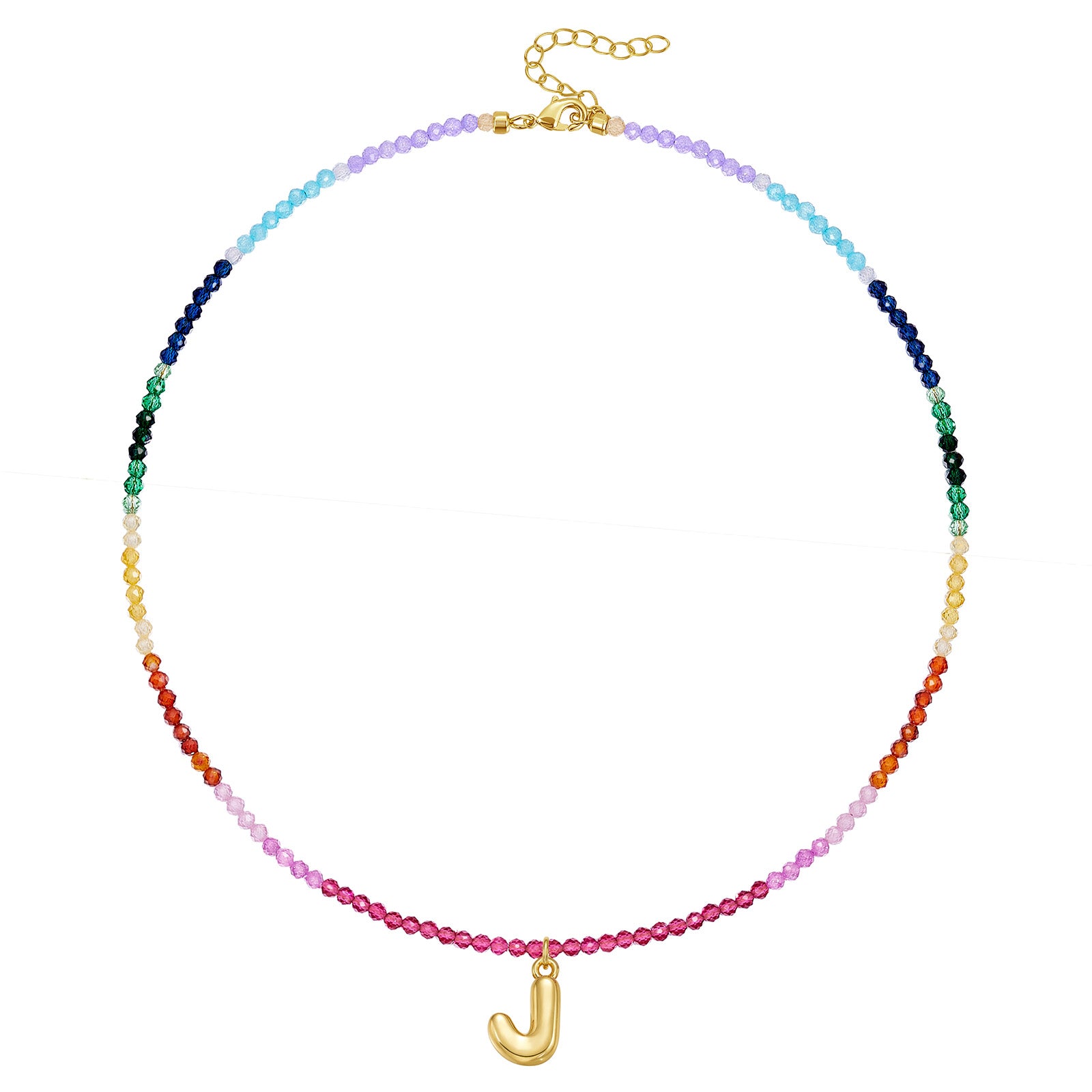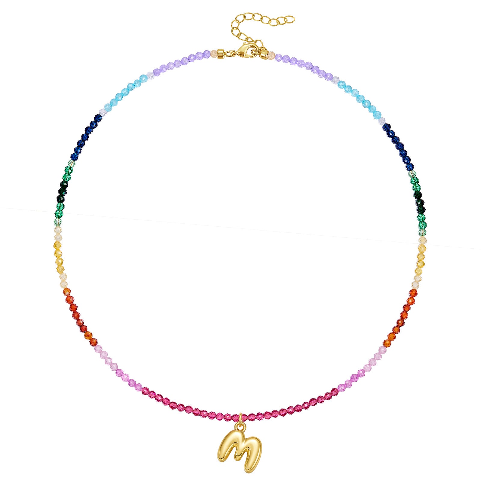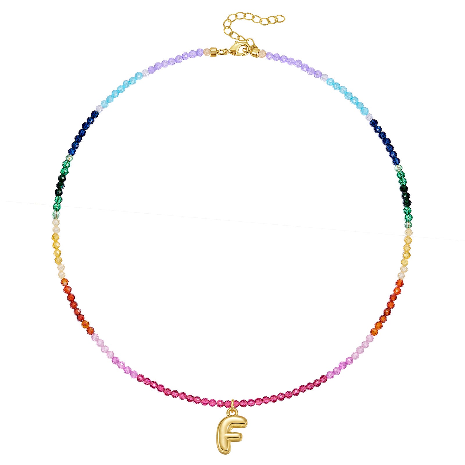 KissYan Beaded Bubble Letter Pendant Rainbow Gemstone Choker