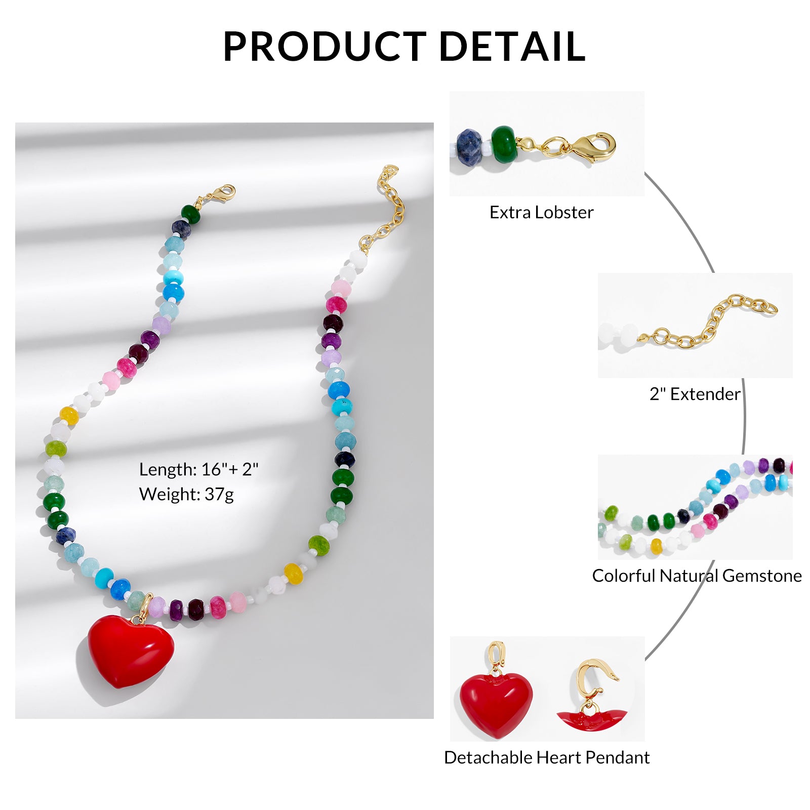 • Premium Materials: Our heart pendant is made of high-quality brass material, the chain is made of natural stones, which are finely polished to have a long-lasting and bright luster, and are not easy to fade. no lead and no nickel, hypoallergenic properties