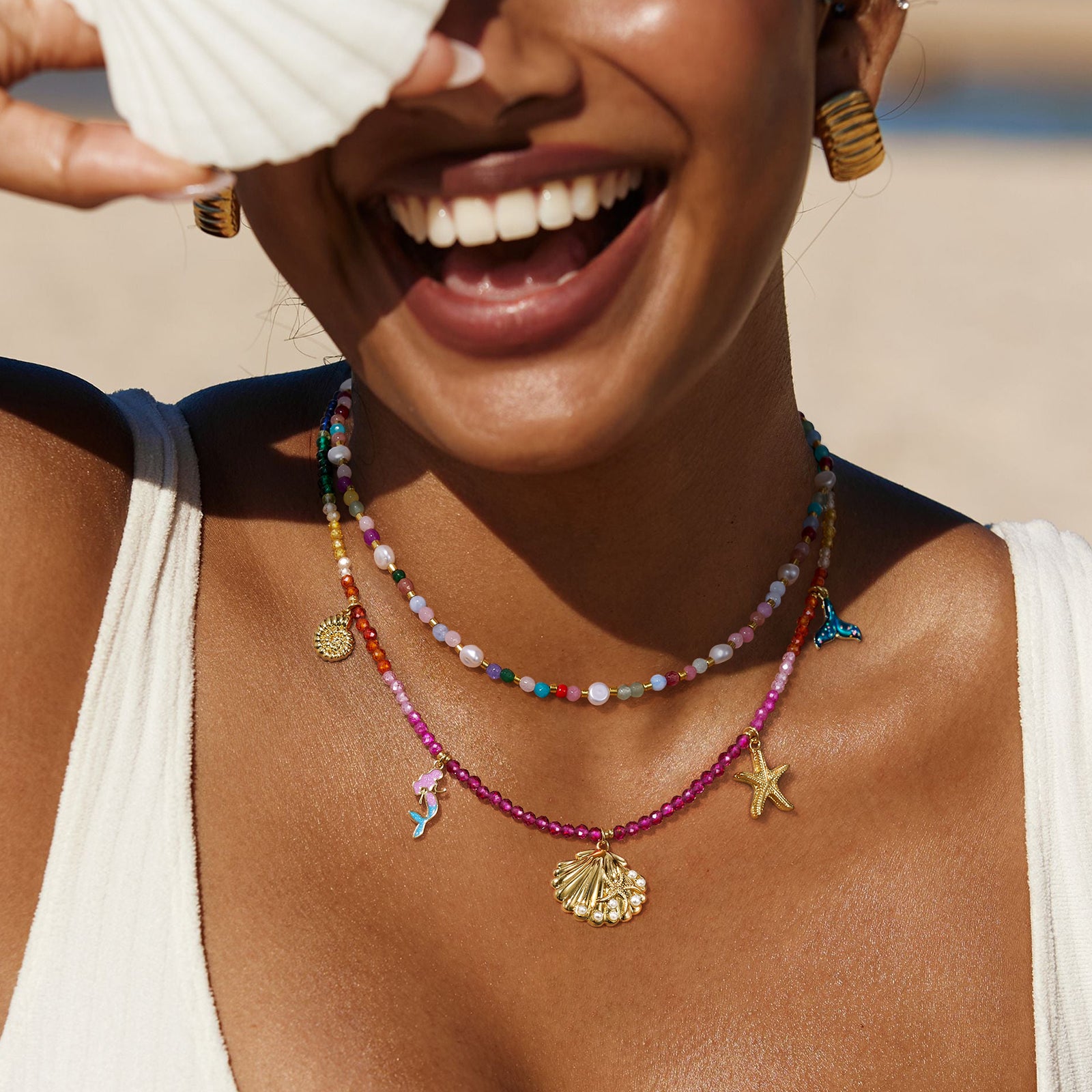 - Summer Aesthetic: This beach necklace features a delightful combination of various themed charms including shell, conch, and bow, making it the perfect pendant to elevate your summer wardrobe and embrace the sunny vibes