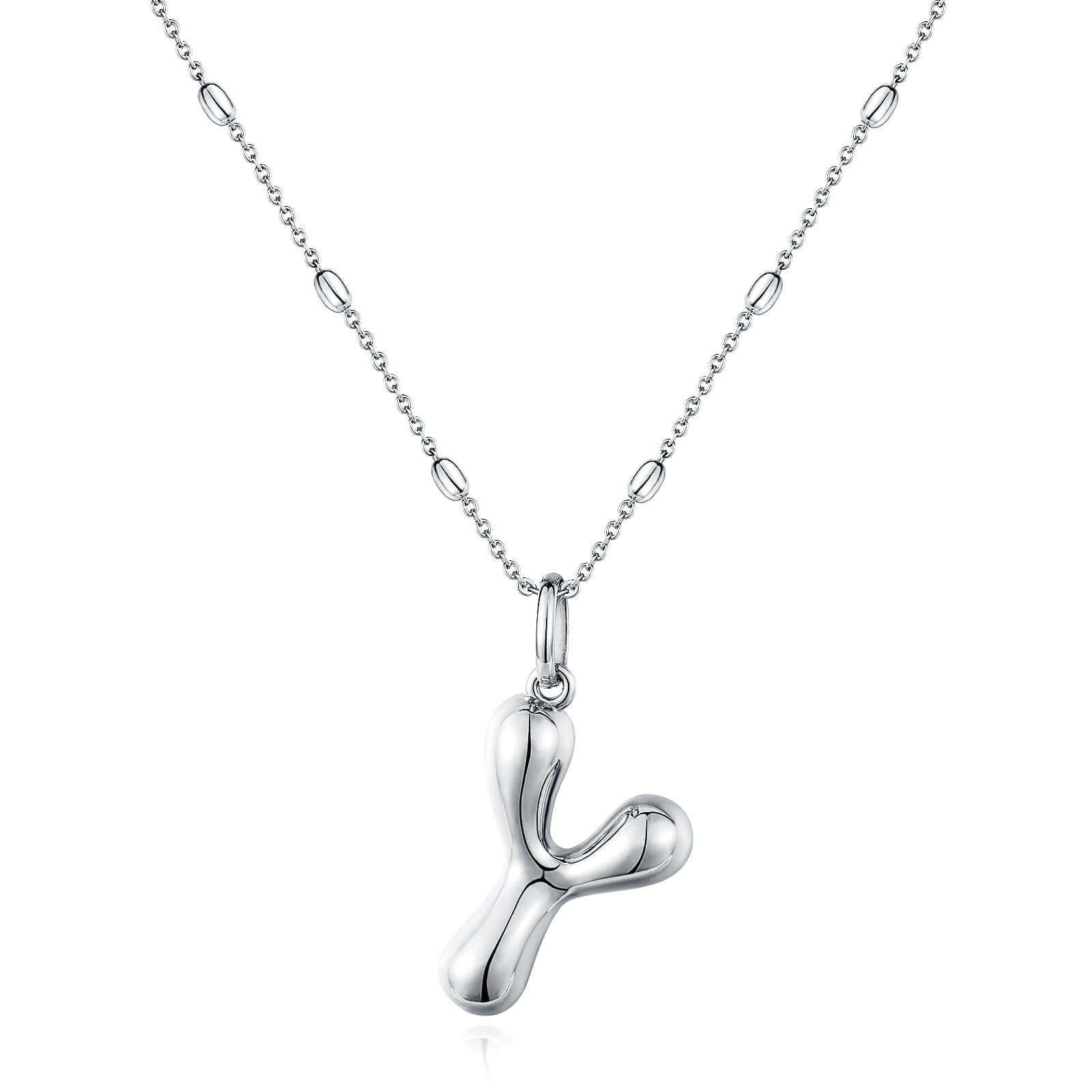 KissYan Bubble Letter Necklace,14K Gold Plated Balloon Initial Pendant with Bead Chain Dainty Jewelry Gift for Women