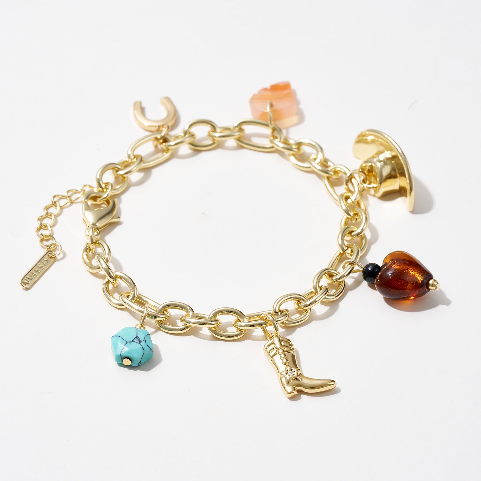 KissYan Cowgirl Charm Boot Horseshoe Turquoise Pendant Bracelets