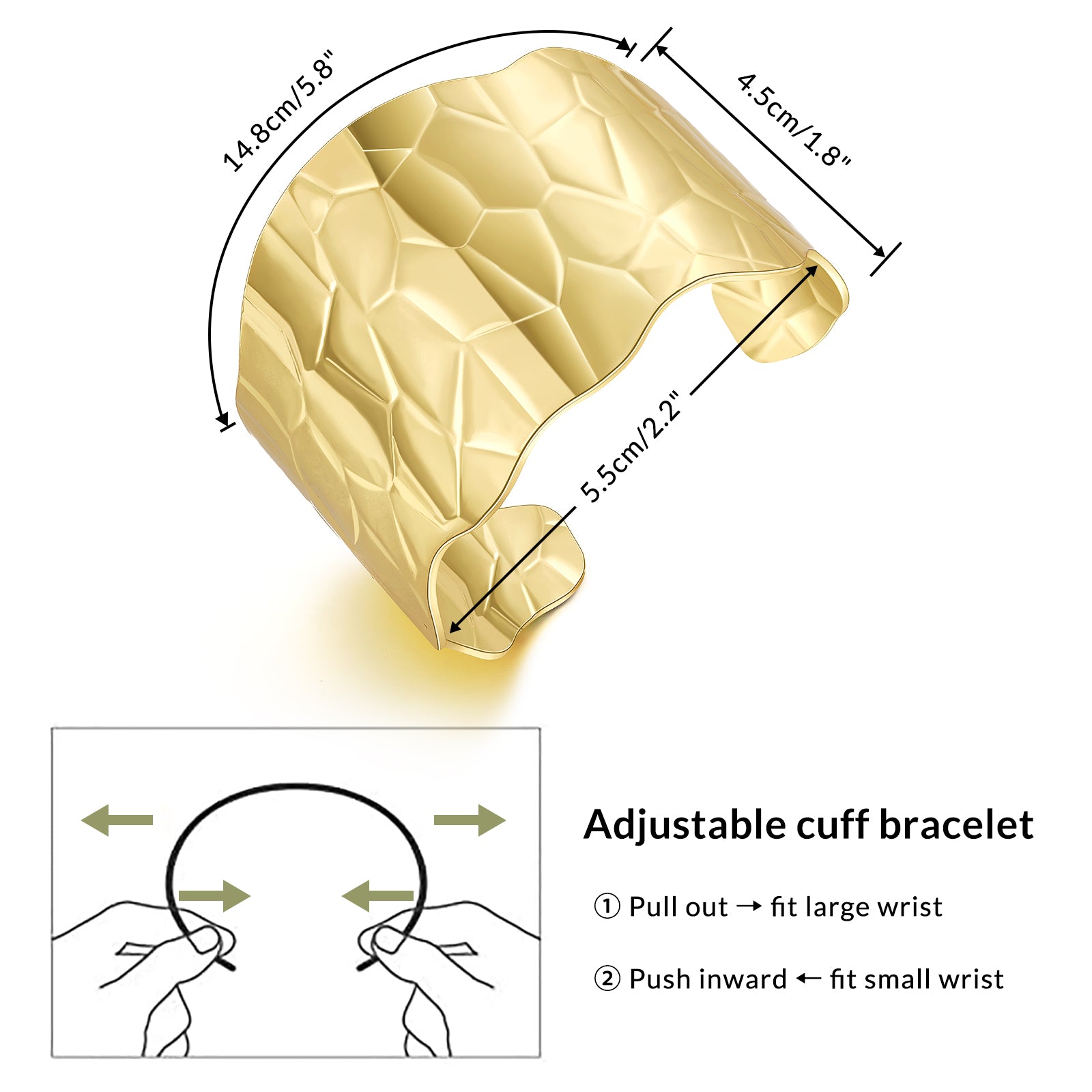 【FLEXIBLE ADJUSTMENT】 This women's bangle bracelet features a classic and aesthetically pleasing open cuff design, allowing you to flexibly adjust the size until it fits your wrist perfectly. It is also easy to put on and take off.