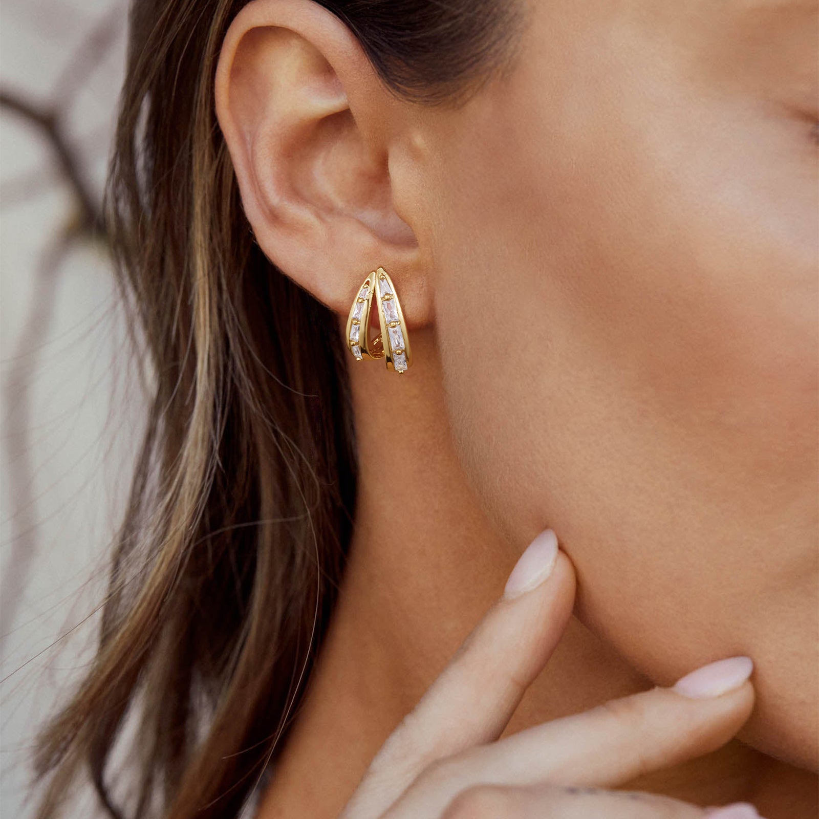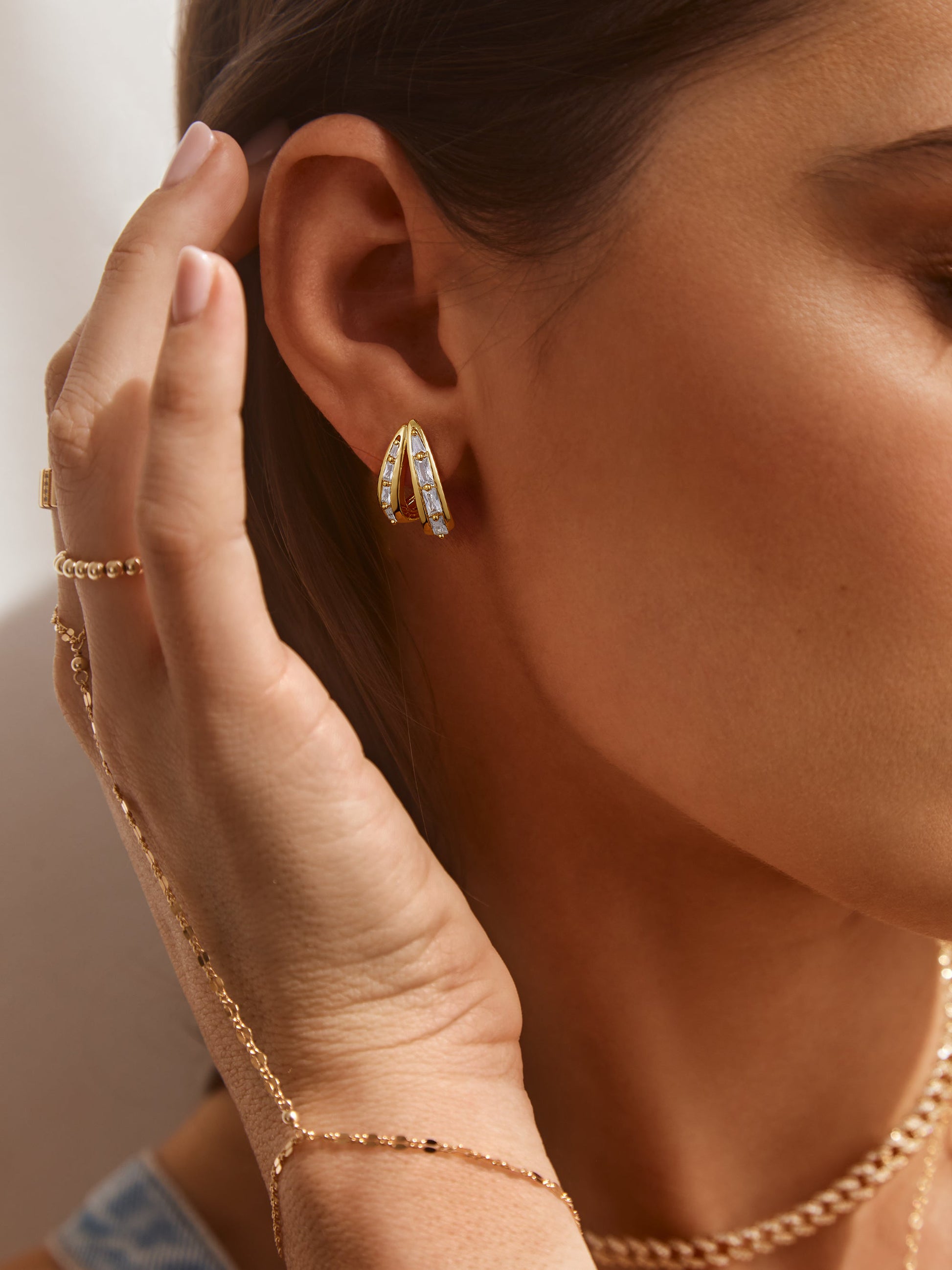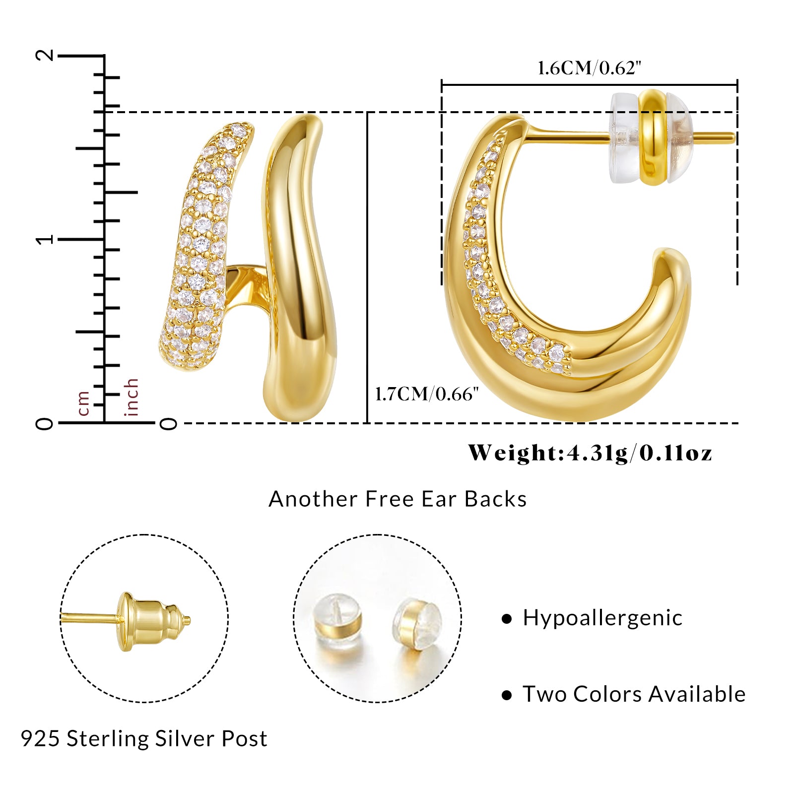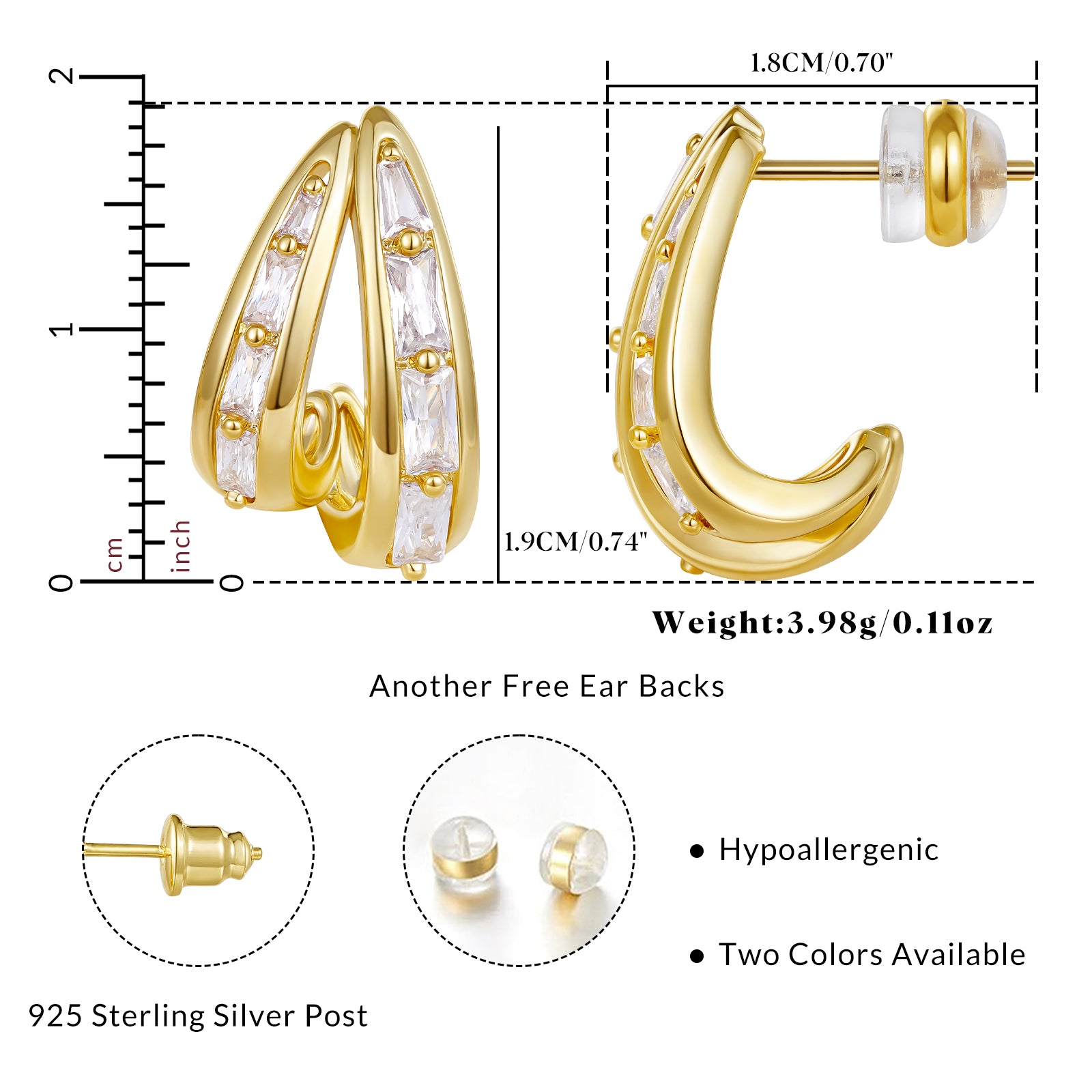 • Superior Material: The gold hoop earrings set is made of 5A grade precision-cut double-row zircon. Available in gold and silver, not easily fading. Earring needles are made of S925 silver, hypoallergenic, with a simple needle design, easy to insert and fix