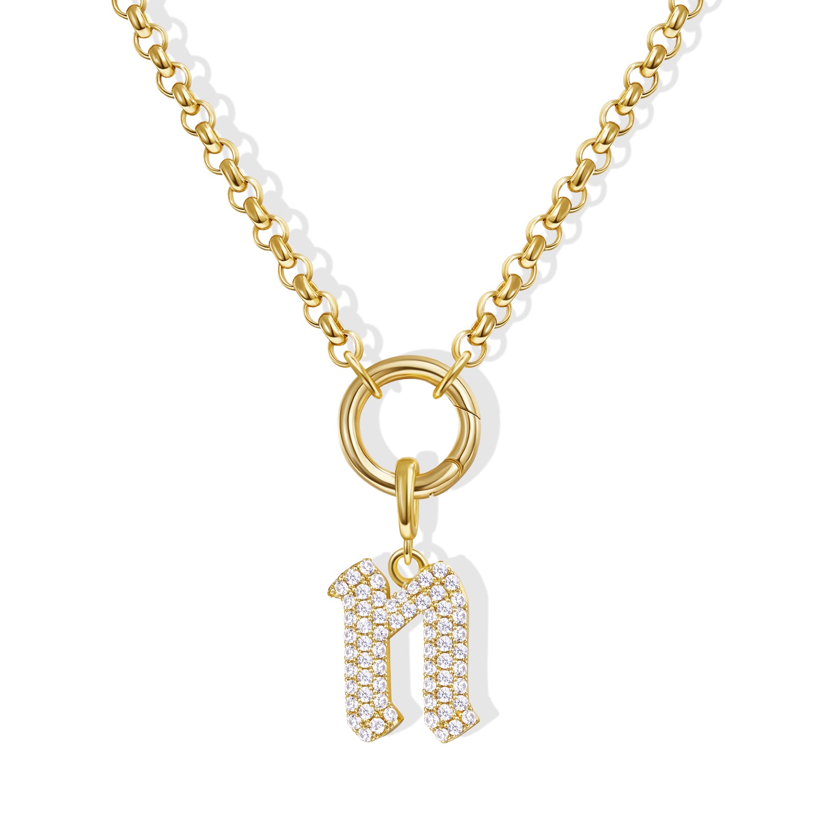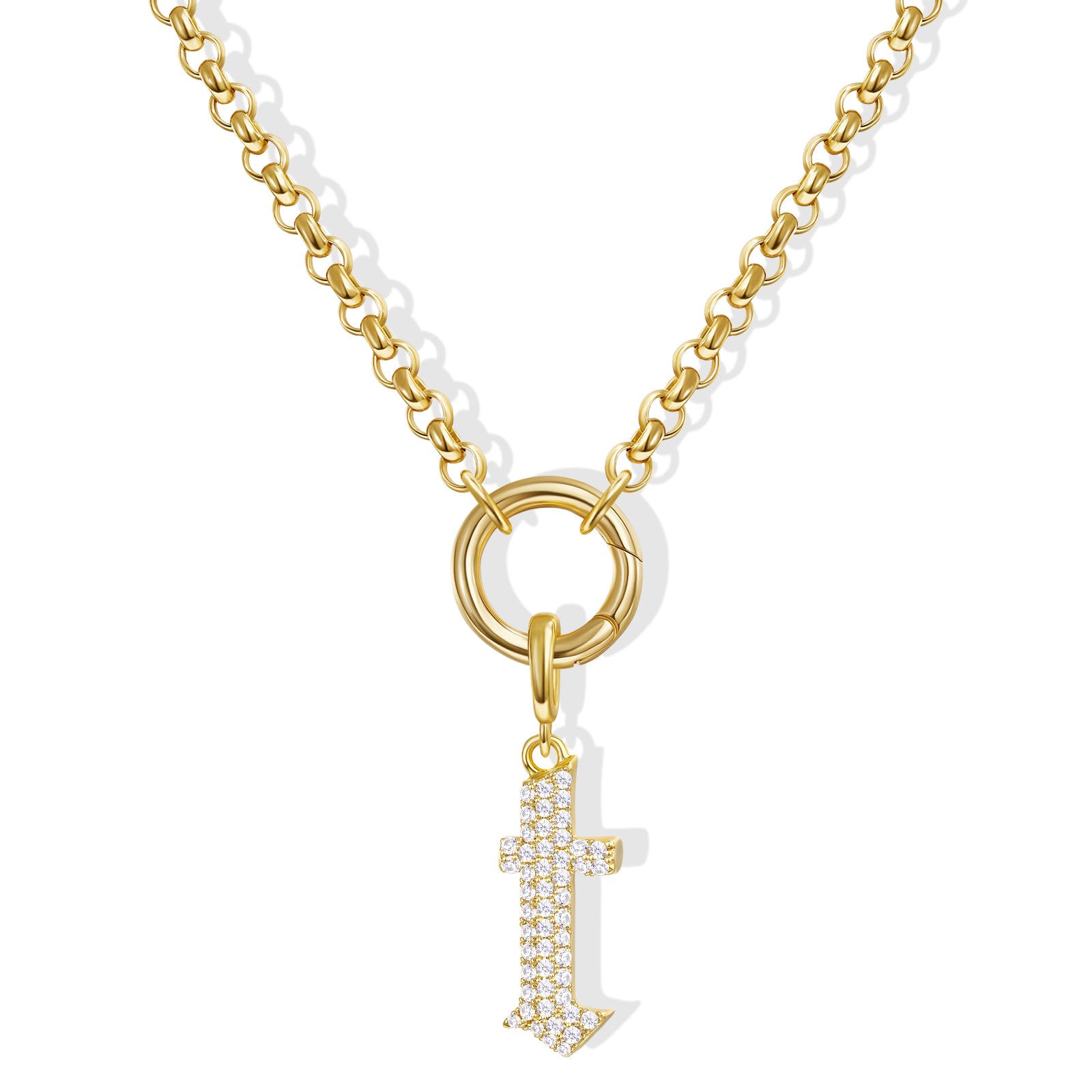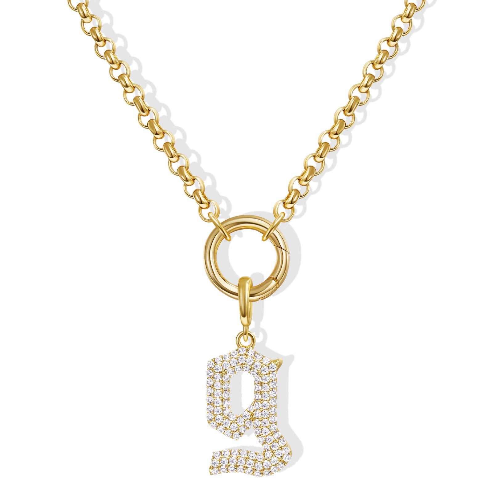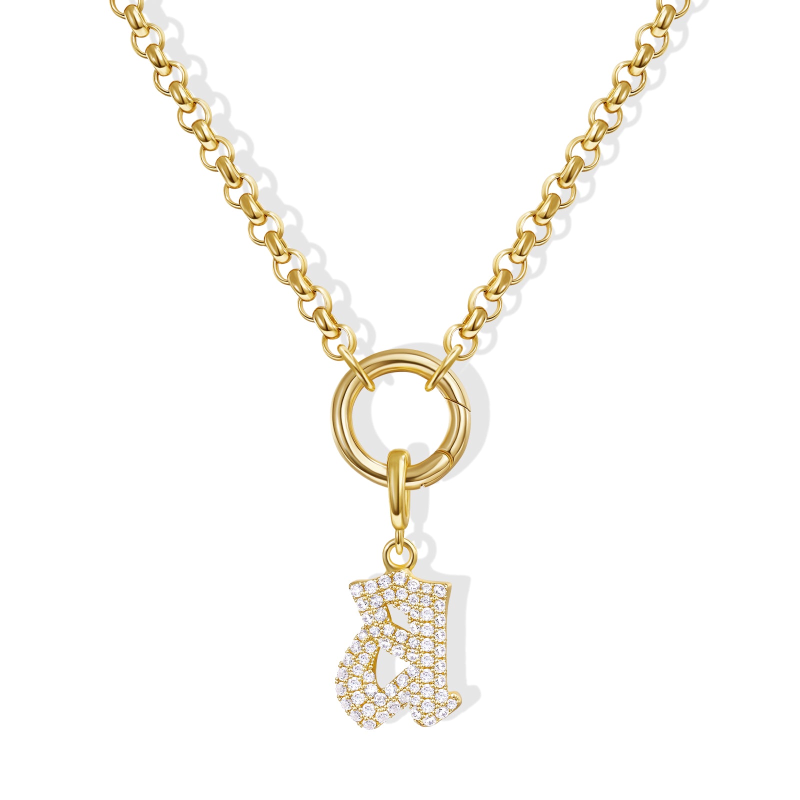 - Gothic Glam: Diamond-paved Gothic letters shine on a tangle-free box chain, crowned with a versatile circle. Medieval elegance meets modern edge