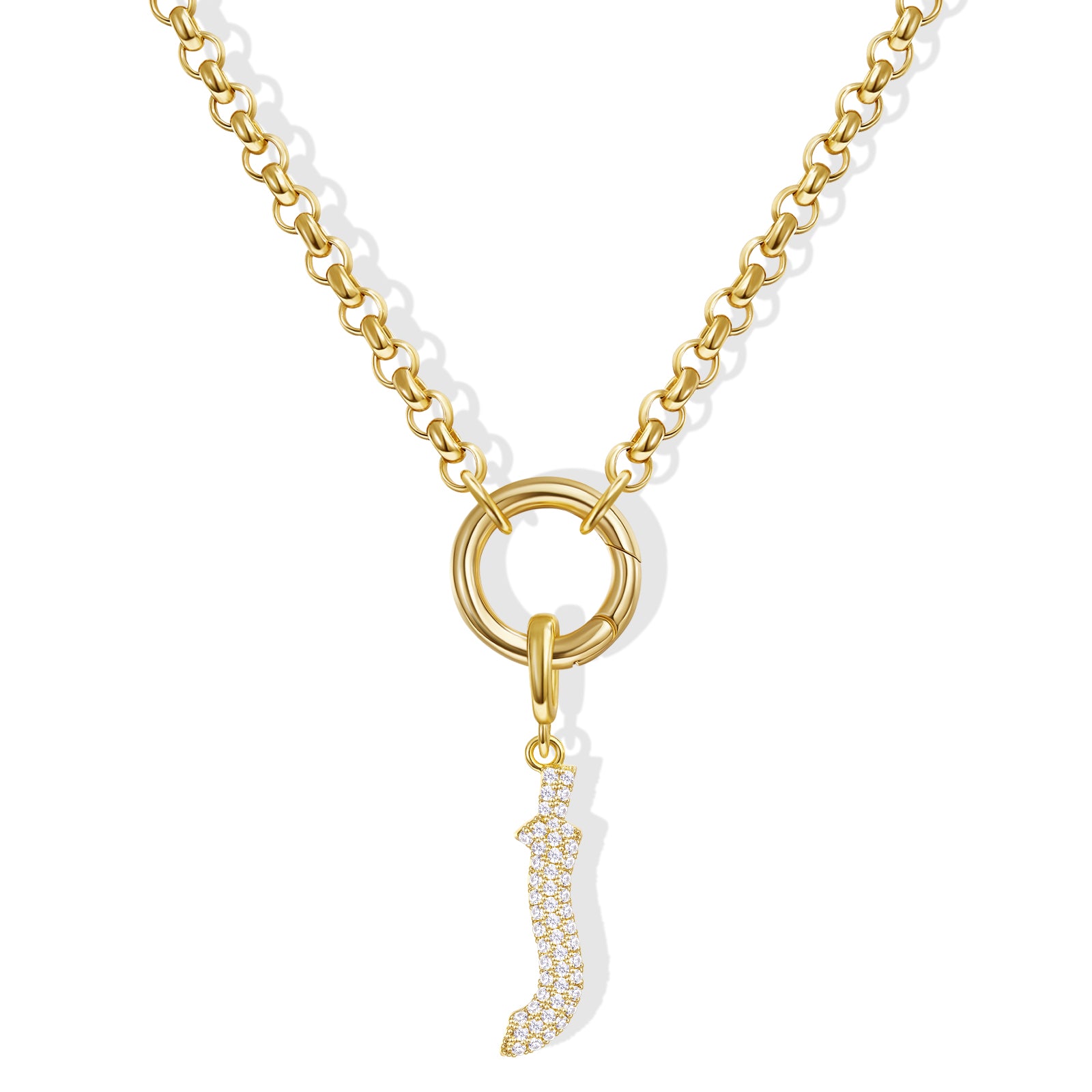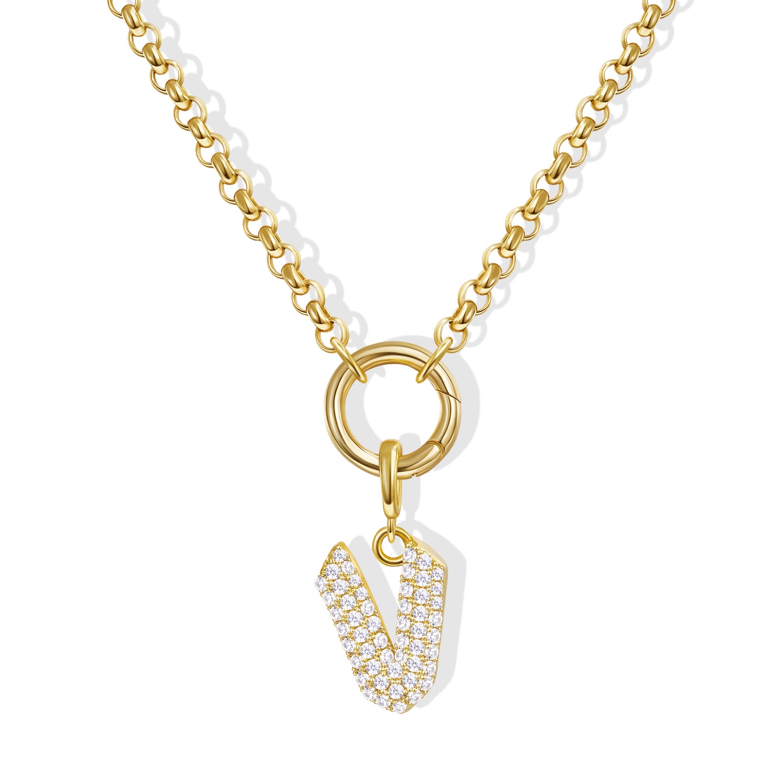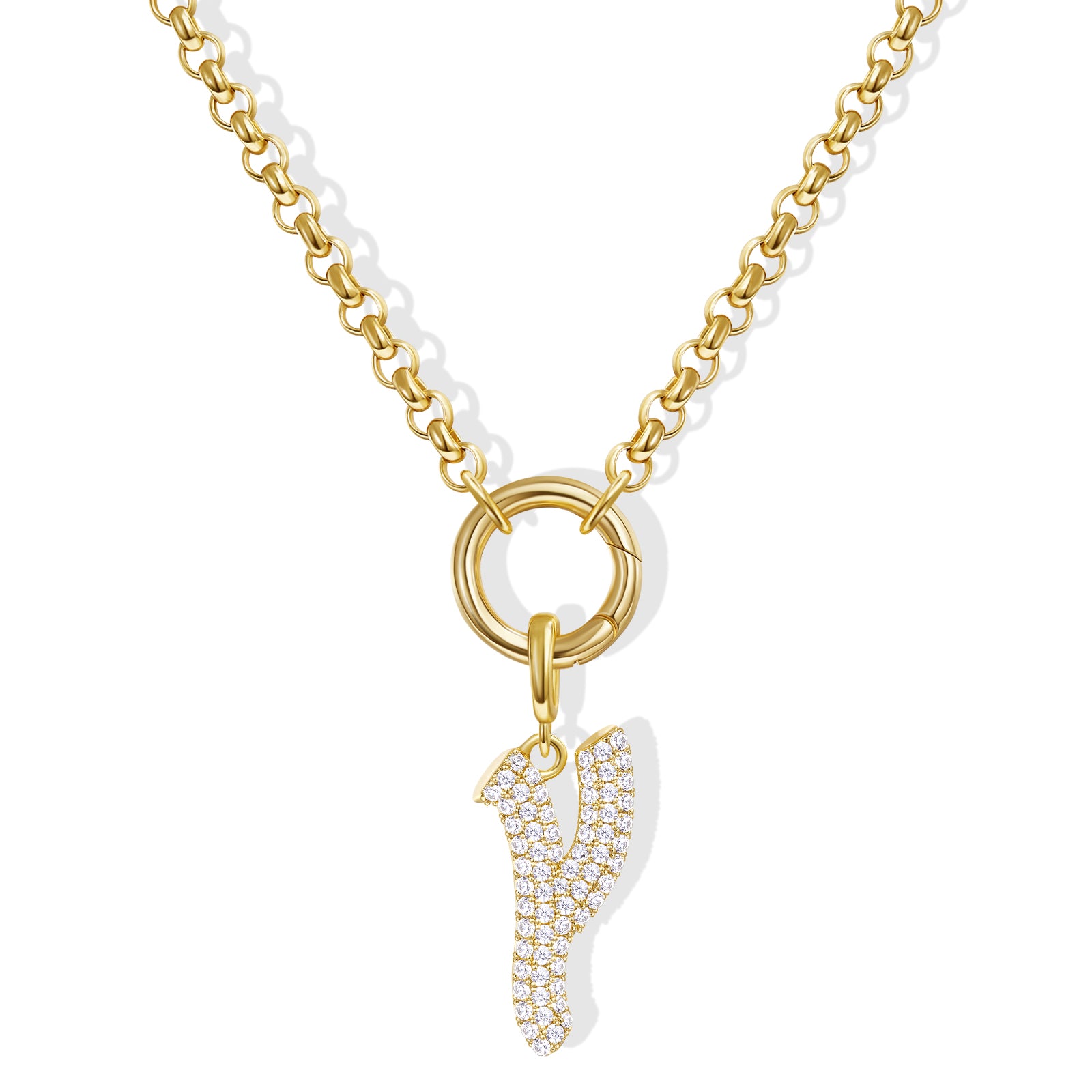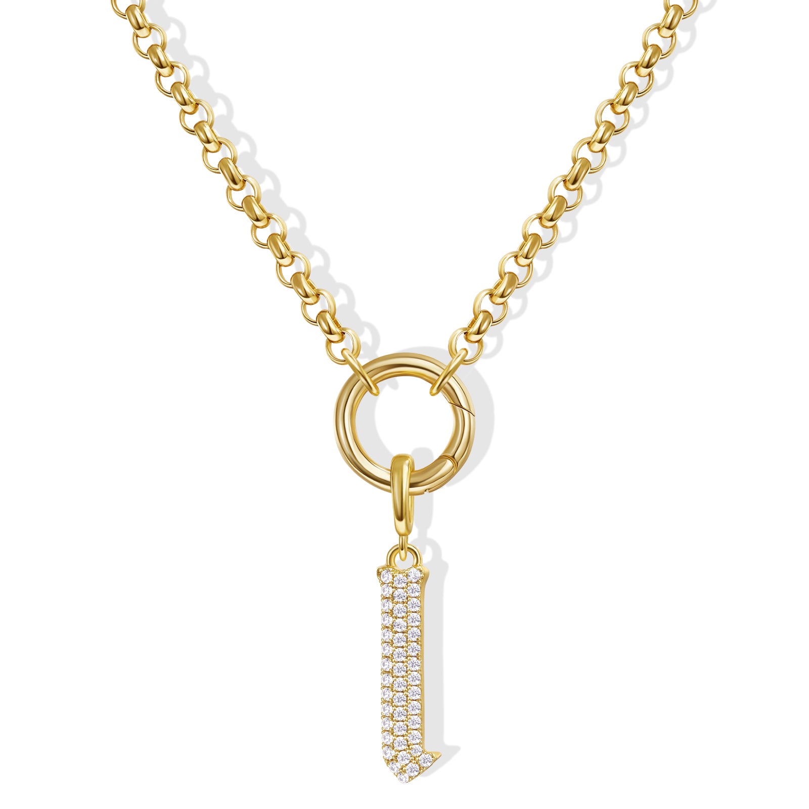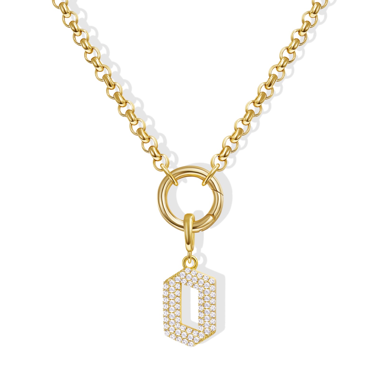 - Gothic Glam: Diamond-paved Gothic letters shine on a tangle-free box chain, crowned with a versatile circle. Medieval elegance meets modern edge