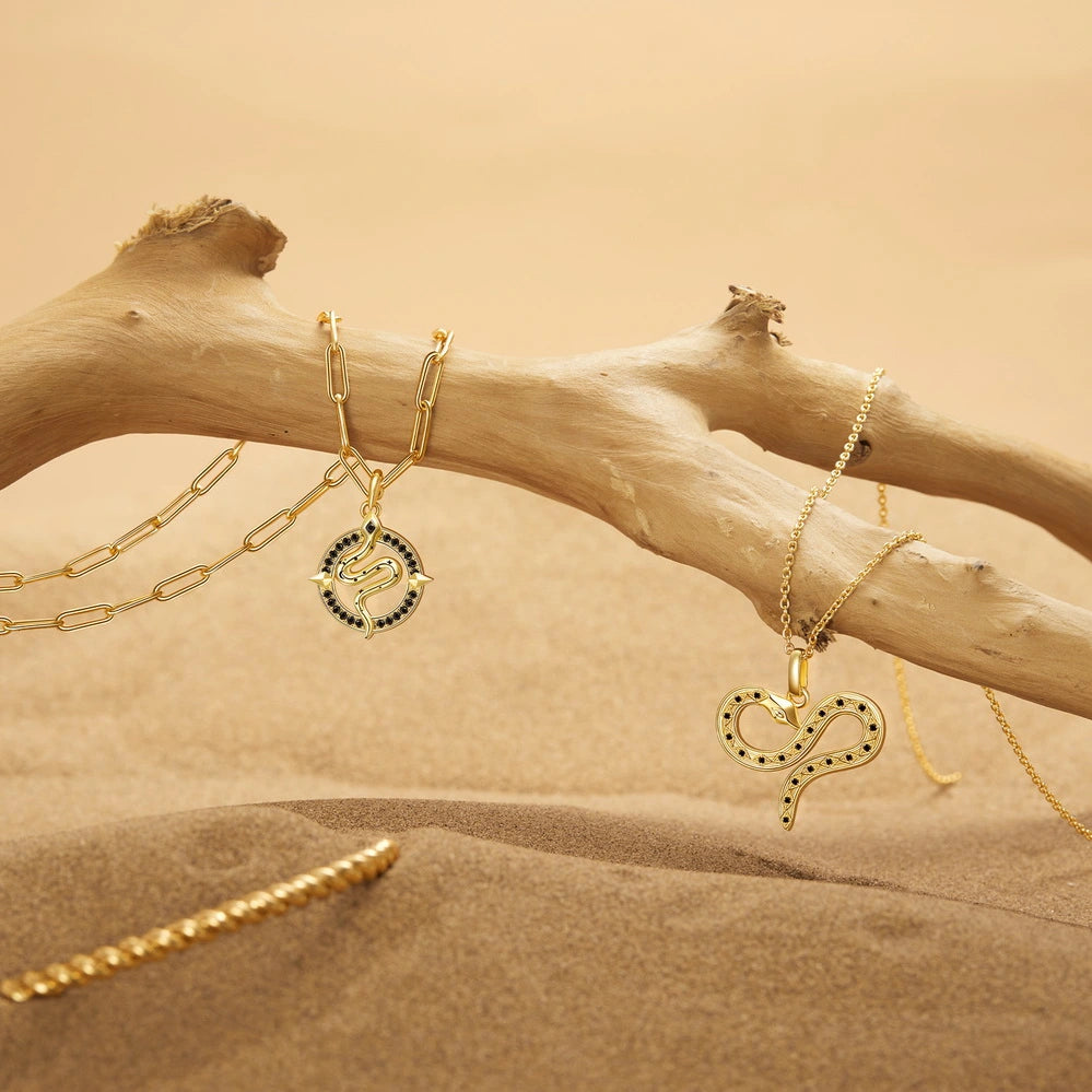 The gold snake pendant features the shape of a circle or heart, with the meaning of healing opportunities, good luck, increased energy as well as eternal love and protection. And the design of 2 separate pieces satisfies your need for different occasions and makes you stand out from the crowd.